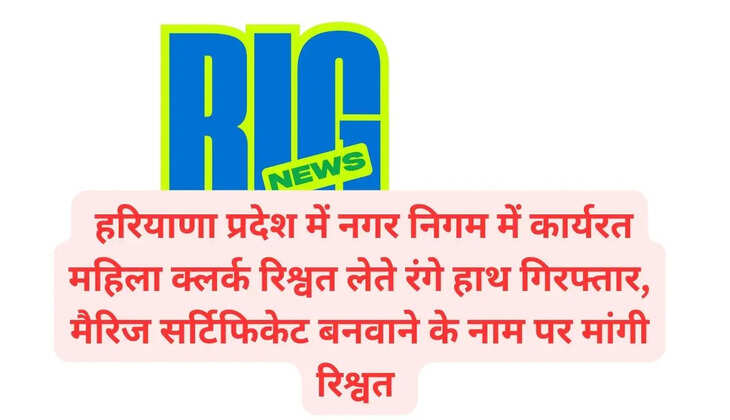 हरियाणा प्रदेश में नगर निगम में कार्यरत महिला क्लर्क रिश्वत लेते रंगे हाथ गिरफ्तार, मैरिज सर्टिफिकेट बनवाने के नाम पर मांगी रिश्वत