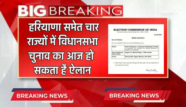 हरियाणा समेत चार राज्यों में विधानसभा चुनाव का आज हो सकता है ऐलान, चुनाव आयोग ने बुलाई प्रेस कॉन्फ्रेंस