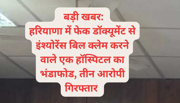 बड़ी खबर: हरियाणा में फेक डॉक्यूमेंट से इंश्योरेंस बिल क्लेम करने वाले एक हॉस्पिटल का भंडाफोड, तीन आरोपी गिरफ्तार