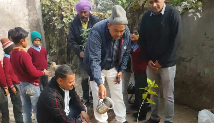 विद्यार्थियों के साथ पौधारोपण व मिठाई बांटकर मनाया ट्रस्ट सदस्य का जन्मदिन