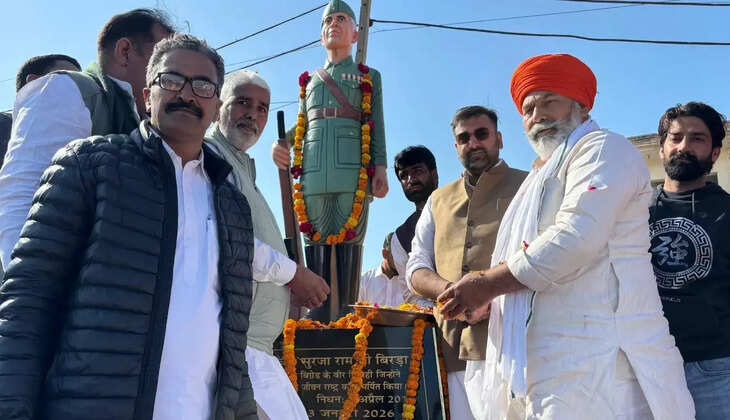 नाथुसरी चोपटा खंड के गांव ढूकड़ा के मुख्य चौक में शुक्रवार को आज़ाद हिंद फ़ौज की ‘आज़ाद ब्रिगेड’ के वीर योद्धा, स्वतंत्रता सेनानी स्वर्गीय चौधरी सूरजा राम बिरडा की प्रतिमा का अनावरण समारोह श्रद्धा और गौरव के साथ आयोजित किया गया।