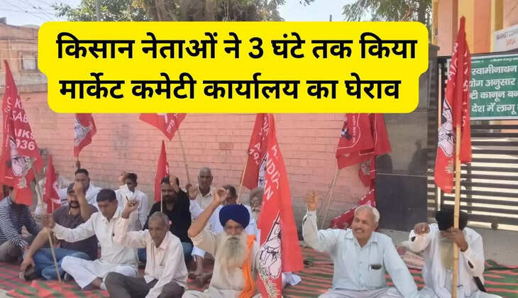 किसान नेताओं ने 3 घंटे तक किया मार्केट कमेटी कार्यालय का घेराव