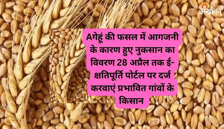 गेहूं की फसल में आगजनी के कारण हुए नुकसान का विवरण 28 अप्रैल तक ई-क्षतिपूर्ति पोर्टल पर दर्ज करवाएं प्रभावित गांवों के किसान