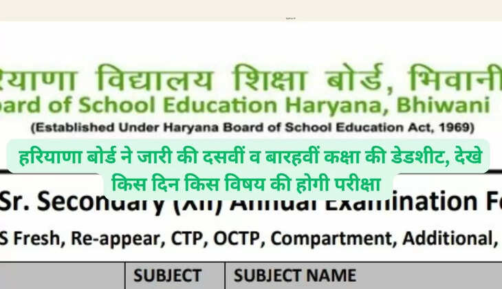 हरियाणा बोर्ड ने जारी की दसवीं व बारहवीं कक्षा की डेडशीट, देखे किस दिन किस विषय की होगी परीक्षा