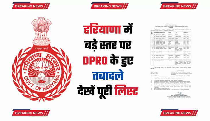 Haryana DPRO Transfer: हरियाणा में बड़े स्तर पर DPRO के तबादले, लिस्ट हुई जारी देखें अभी किसका कहां पर हुआ तबादला
