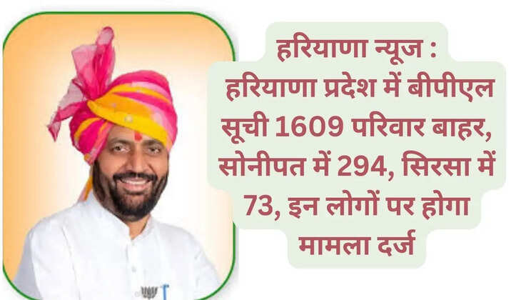 Haryana News : हरियाणा प्रदेश में बीपीएल सूची 1609 परिवार बाहर, सोनीपत में 294, सिरसा में 73, इन लोगों पर होगा मामला दर्ज