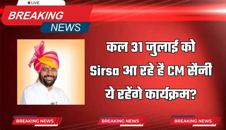 Haryana News: कल 31 जुलाई को Sirsa आ रहे है CM नायब सिंह सैनी, ये रहेंगे कार्यक्रम?