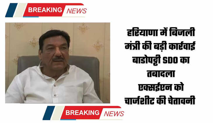 Haryana: हरियाणा में बिजली मंत्री की बड़ी कार्रवाई, बाडोपट्टी SDO का तबादला, एक्सईएन को चार्जशीट की चेतावनी