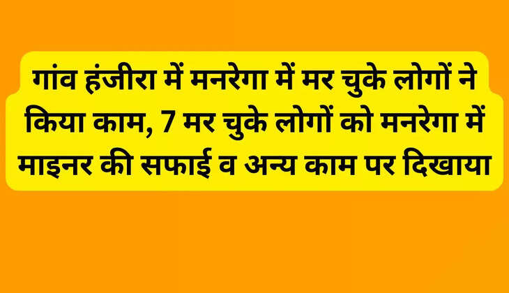 नाथूसरी चौपटा के गांव हंजीरा में मनरेगा के अंदर गोलमाल हुआ है। यहां पर स्वर्ण सुधार चुके लोगों को काम पर दिखाया गया है। यानि 7 मर चुके लोगों को काम पर दिखाया गया है। पोर्टल पर मृतकों ने मरम्मत का कार्य किया है। इस सुनकर सब हैरान है।