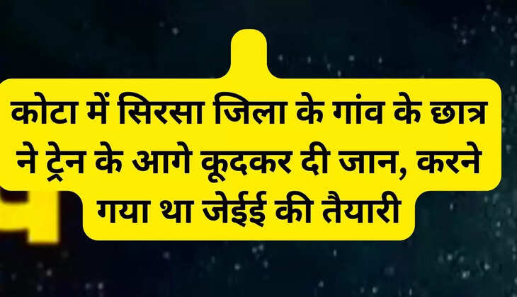 कोटा में सिरसा जिला के गांव के छात्र ने ट्रेन के आगे कूदकर दी जान, करने गया था JEE की तैयारी