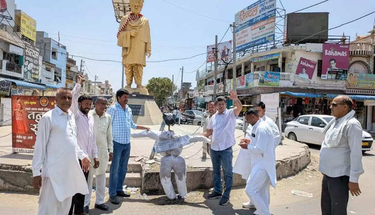 In protest against the incidents in Hisar and Kurukshetra, JJP burnt the effigy of BJP government in Nathusari Chaupata