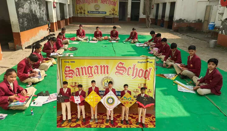 बसंत पंचमी पर संगम स्कूल भरोखां में पतंग बनाओ प्रतियोगिता आयोजित