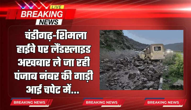 चंडीगढ़-शिमला हाईवे पर लैंडस्लाइड, अखबार ले जा रही पंजाब नंबर की गाड़ी आई चपेट में...