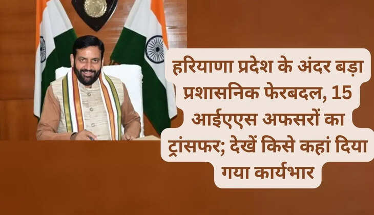 हरियाणा प्रदेश के अंदर बड़ा प्रशासनिक फेरबदल, 15 आईएएस अफसरों का ट्रांसफर; देखें किसे कहां दिया गया कार्यभार