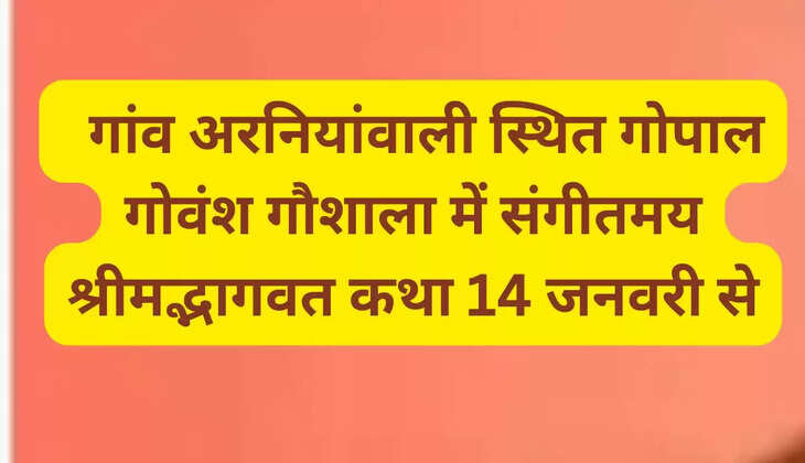 गांव अरनियांवाली स्थित गोपाल गोवंश गौशाला में संगीतमय श्रीमद्भागवत कथा 14 जनवरी से