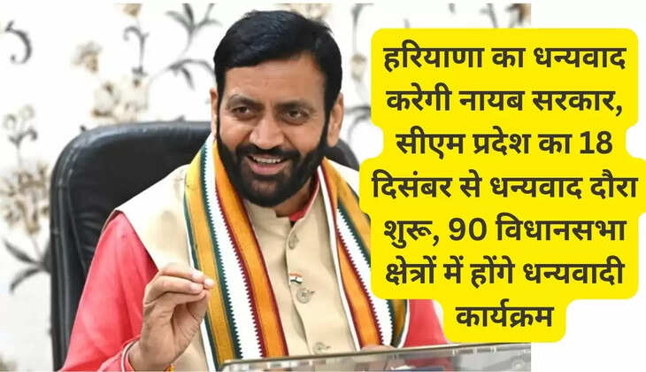हरियाणा का धन्यवाद करेगी नायब सरकार, सीएम प्रदेश का 18 दिसंबर से धन्यवाद दौरा शुरू, 90 विधानसभा क्षेत्रों में होंगे धन्यवादी कार्यक्रम