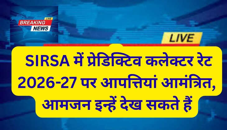 SIRSA में प्रेडिक्टिव कलेक्टर रेट 2026-27 पर आपत्तियां आमंत्रित, आमजन इन्हें देख सकते हैं