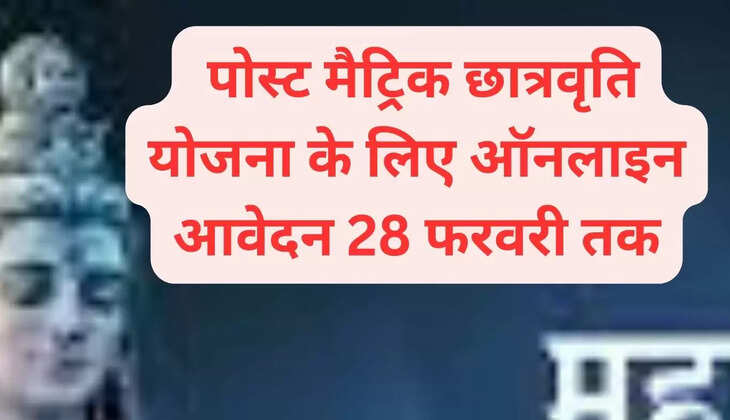 पोस्ट मैट्रिक छात्रवृति योजना के लिए ऑनलाइन आवेदन 28 फरवरी तक