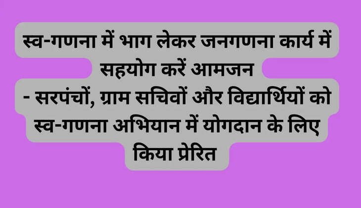 स्व-गणना में भाग लेकर जनगणना कार्य में सहयोग करें आमजन - सरपंचों, ग्राम सचिवों और विद्यार्थियों को स्व-गणना अभियान में योगदान के लिए किया प्रेरित