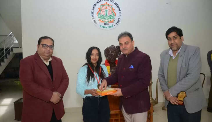 जेसीडी विद्यापीठ सिरसा में फार्मेसी कॉलेज की मेधावी छात्रा रिया ने यूनिवर्सिटी में पाया पहला स्थान