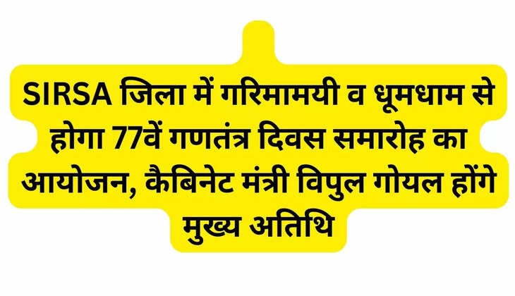 SIRSA जिला में गरिमामयी व धूमधाम से होगा 77वें गणतंत्र दिवस समारोह का आयोजन, कैबिनेट मंत्री विपुल गोयल होंगे मुख्य अतिथि