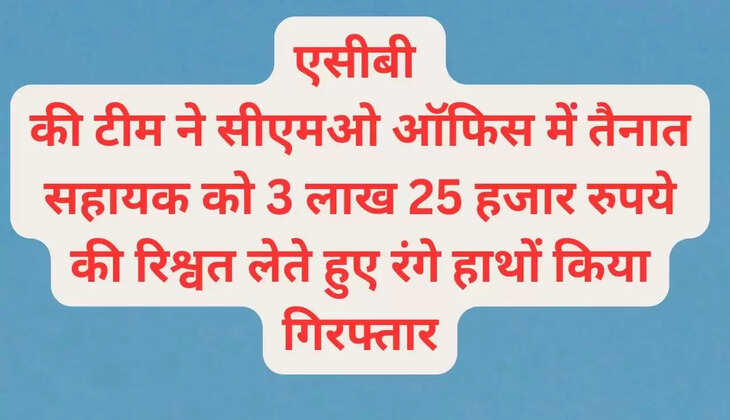 एसीबी की टीम ने सीएमओ ऑफिस में तैनात सहायक को 3 लाख 25 हजार रुपये की रिश्वत लेते हुए रंगे हाथों किया गिरफ्तार