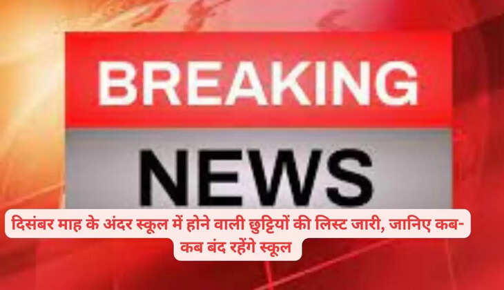 दिसंबर माह के अंदर स्कूल में होने वाली छुट्टियों की लिस्ट जारी, जानिए कब-कब बंद रहेंगे स्कूल