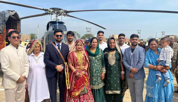 सास की इच्छा थी बेटा दुल्हन को हेलीकॉप्टर में लेकर आए, कागदाना गांव में हेलीकॉप्टर पर राजस्थान से दुल्हन लेकर आया दुल्हा