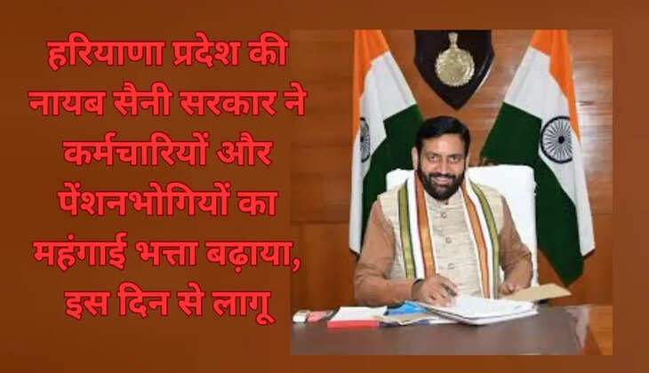 हरियाणा प्रदेश की नायब सैनी सरकार ने कर्मचारियों और पेंशनभोगियों का महंगाई भत्ता बढ़ाया, इस दिन से लागू