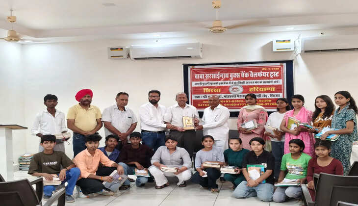 सिरसा। वर्ष 26-27 का बाबा सरसाईनाथ बुक बैंक का तीसरा पुस्तक वितरण समारोह रविवार की सुबह गौशाला के कॉन्फ्रेंस हॉल में आयोजित किया गया। मुख्य अतिथि रमेश गोयल एडवोकेट जल स्टार व राजेंद्र कुमार रातुसरिया प्रधान श्री गौशाला ने मां सरस्वती व बाबा सरसाईनाथ की प्रतिमा के सामने ज्योत प्रज्ज्वलित कर कार्यक्रम का शुभारंभ किया। जानकारी देते हुए ट्रस्ट के महासचिव प्रेम कंदोई ने बताया ट्रस्ट की सभी पदाधिकारियों ने बाबा सरसाईनाथ व मां सरस्वती की फोटो पर भी पुष्प अर्पित किए गए।