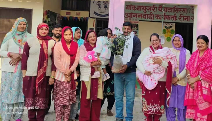 आंगनवाड़ी केंद्र नाथूसरी चौपटा में बेटियों को गोद लेने वाले तीन दंपतियों को किया सम्मानित, 'बेटी बचाओ-बेटी पढ़ाओ' की दिलाई शपथ