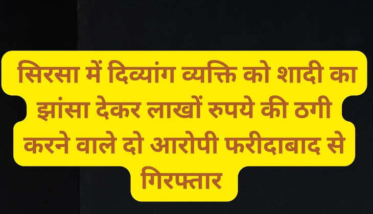 सिरसा में दिव्यांग व्यक्ति को शादी का झांसा देकर लाखों रुपये की ठगी करने वाले दो आरोपी फरीदाबाद से गिरफ्तार