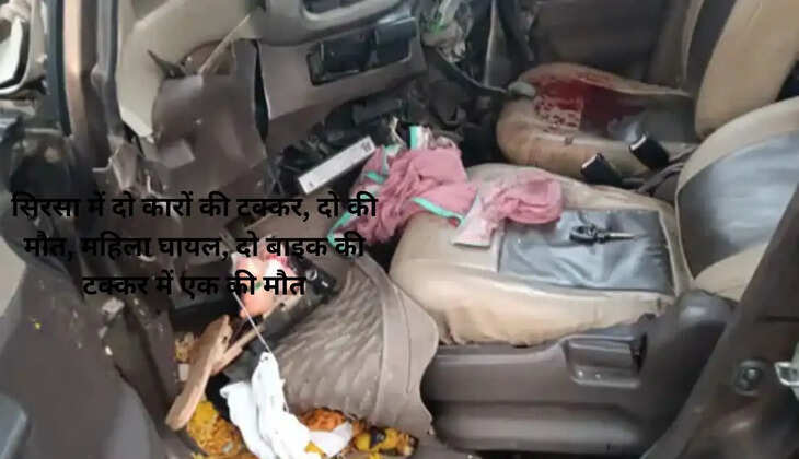 सिरसा में 2 कारों की टक्कर, 2 की मौत, महिला घायल, दो बाइक की टक्कर में एक की मौत