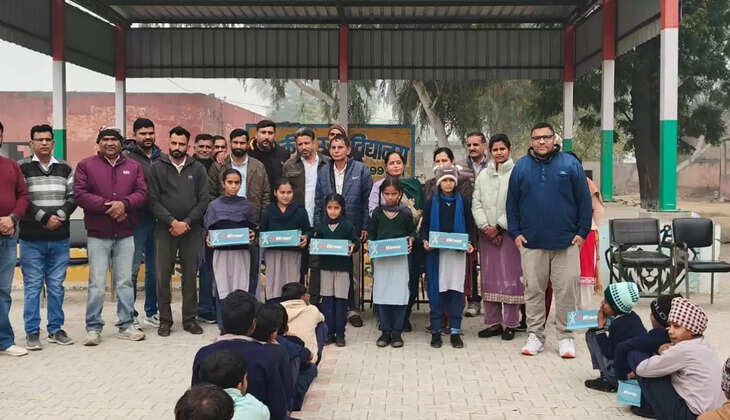 विदेश में रह रहे युवाओं ने स्कूली बच्चों को वितरित किए जूते, जुराब व जर्सी