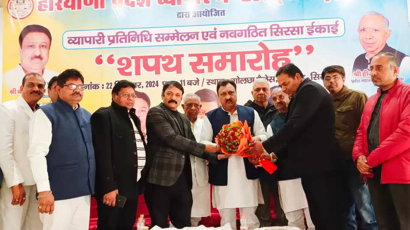 हरियाणा के सिरसा में व्यापारियों का सम्मेलन सिरसा के निजी बैंक्विट हॉल में हुआ। जिस कार्यक्रम में मुख्य अतिथि हरियाणा प्रदेश व्यापार मंडल के प्रांतीय अध्यक्ष व हरियाणा कांन्फैड के पूर्व चेयरमैन बजरंग गर्ग थे। कार्यक्रम की अध्यक्षता व्यापार मंडल के जिला प्रधान व प्रदेश महासचिव हीरालाल शर्मा ने की। इस सम्मेलन में भारी संख्या में विभिन्न ट्रेडों के प्रधान सहित व्यापारी प्रतिनिधियों ने भाग लिया।