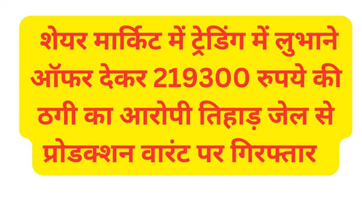 शेयर मार्किट में ट्रेडिंग में लुभाने ऑफर देकर 219300 रुपये की ठगी का आरोपी तिहाड़ जेल से प्रोडक्शन वारंट पर गिरफ्तार