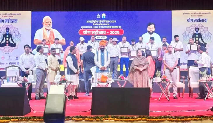 सिरसा। शाह सतनाम जी गर्ल्स स्कूल SIRSA की प्रधानाचार्या डा. शीला पूनिया इन्सां को पंचकूला में आयोजित भव्य योग महोत्सव में HARYANA प्रदेश के CM नायब सिंह सैनी द्वारा सम्मानित किया गया। उन्हें यह सम्मान सूर्य नमस्कार अभियान 2025 में उत्कृष्ट प्रदर्शन के लिए प्रदान किया गया। शाह सतनाम जी गर्ल्स स्कूल सिरसा की छात्राओं की सूर्य नमस्कार में सबसे अधिक भागीदारी रही है और समग्र स्वास्थ्य के लिए योग को बढ़ावा देने की दिशा में स्कूल लगातार कार्य कर रहा है। शाह सतनाम जी गर्ल्स स्कूल की प्रधानाचार्या डा. शीला पूनिया इन्सां ने अवार्ड मिलने पर प्रदेश के मुख्यमंत्री नायब सिंह सैनी का आभार जताया। वहीं इस अवार्ड का पूरा श्रेय उन्होंने डेरा सच्चा सौदा के पूज्य गुरु संत डा. गुरमीत राम रहीम सिंह जी इन्सां को दिया। उन्होंने कहा कि इस तरह के अवॉर्ड से निश्चित तौर पर सेवा के प्रति और समर्पित रहने की प्रेरणा मिलती है और आत्मविश्वास भी बढ़ता है। स्कूल की प्रधानाचार्या का कहना है कि उन्हें आज तक जितने भी सम्मान प्राप्त हुए हैं, वह सब डा. एमएसजी के पावन आशीर्वाद से ही संभव हुआ है और उन्हीं के मार्गदर्शन से स्कूल बुलंदियों को छू रहा है। स्कूल की प्रधानाचार्या को अवार्ड मिलने पर स्कूल स्टाफ व मैनेजमेंट सदस्यों ने भी उन्हें बधाई दी।