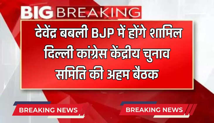 बड़ी खबरें : देवेंद्र बबली BJP में होंगे शामिल, दिल्ली कांग्रेस केंद्रीय चुनाव समिति की अहम बैठक