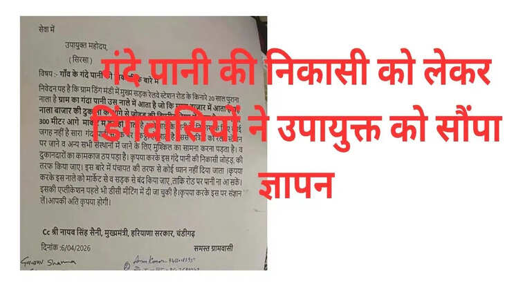 सिरसा। डिंग मंडी में गंदे पानी की निकासी को लेकर ग्रामीणों ने जिला उपायुक्त को मुख्यमंत्री के नाम एक ज्ञापन सौंपा है। उपायुक्त को दिए ज्ञापन में गौरीशंकर खलेरी, गौरव शर्मा, अनिल, सुरेंद्र कुमार, सुरेंद्र सिंह, आत्माराम, सुनील, प्रदीप कमार, राजकुमार, अमन कुमार, राकेश, गौरव सेठी, महेंद्र कुमार, घमंडीराम, अनिल कुमार, सुरेश, आशीष कुमार, ओमप्रकाश, डा. रणजीत, कृष्ण फुटेला, दलीप नाई, अशोक सैनी, श्याम घड़ी वाला, अनिल बर्तनवाला, सीताराम शर्मा ने बताया कि गांव की मुख्य सड़क रेलवे स्टेशन रोड के किनारे 20 साल पुराना नाला है।