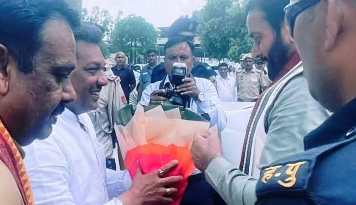 Haryana CMमुख्यमंत्री नायब सिंह सैनी श्री गौशाला सिरसा में आयोजित गौशाला चारा अनुदान वितरण समारोह में शामिल होने से पूर्व पीडब्ल्यूडी रेस्ट हाउस सिरसा परिसर में पहुंचे जहां पर गोबिंद कांडा ने उन्हें बुकें भेंटकर उनका स्वागत किया।