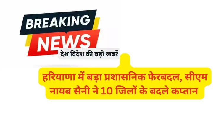 हरियाणा में बड़ा प्रशासनिक फेरबदल, सीएम नायब सैनी ने 10 जिलों के बदले कप्तान
