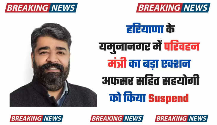 हरियाणा के यमुनानगर में परिवहन मंत्री का बड़ा एक्शन, अफसर सहित सहयोगी को किया Suspend