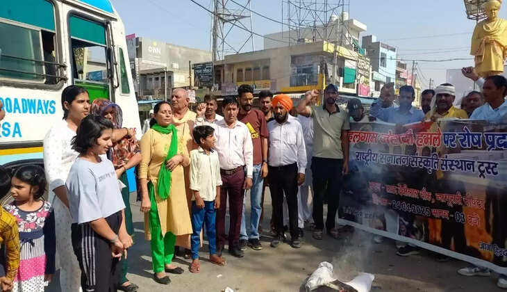 सिरसा जिला के नाथूसरी चौपटा में राष्ट्रीय सनातन संस्कृति संस्थान ट्रस्ट ने आतंकवाद का पुतला फूंक कर रोष जताया । इसके साथ ही पहलगाम त्रासदी पर गहरा शोक व्यक्त किया है। बहुत ही शांतपूर्ण माहौल में आतंकियों द्वारा पर्यटकों की सरेआम हत्या किए जाने की दुर्भाग्यपूर्ण घटना अत्यंत दुखद है। प्रधान प्रधान विकास भारी, सुखदेवी बेनीवाल, पूर्ण दास महाराज, दिनेश जांगड़ा, सरदार कुलवंत सिंह, महावीर बिल्लू, मुकेश सहारण, नरेंद्र, पूर्व सरपंच प्रदीप बेनीवाल, पूर्व सरपंच सुभाष चंद्र, कुलदीप गहलोत सहित कई लोगों ने चोपटा के चौधरी देवीलाल चौक पर एकत्रित हो कर आतंकवाद का पुतला फूंका और रोष जताया ।इन्होंने पाकिस्तान मुर्दाबाद के नारे लगाए और आतंकवादियों पर कड़ी कार्रवाई करने की मांग की।