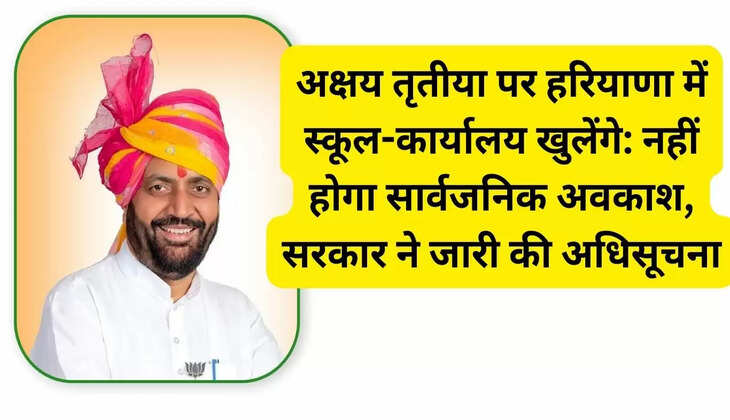 अक्षय तृतीया पर हरियाणा में स्कूल-कार्यालय खुलेंगे: नहीं होगा सार्वजनिक अवकाश, सरकार ने जारी की अधिसूचना