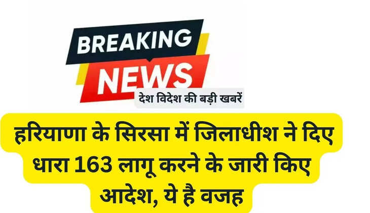 हरियाणा के सिरसा में जिला प्रशासन ने धारा 163 लागू कर दी है। संयुक्त किसान मोर्चा (गैर-राजनीतिक) एवं किसान मजदूर मोर्चा के बैनर तले किसानों ने अपनी मांगों को लेकर 6 दिसंबर को प्रस्तावित दिल्ली कूच का आह्वान किया है। किसानों के दिल्ली कूच के मद्ïदेनजर जिला में कानून व्यवस्था बनाए रखने के लिए जिलाधीश शांतनु शर्मा ने बीएनएसएस की धारा 163 लागू करने के आदेश जारी किए हैं।