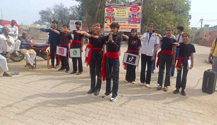 दयानंद स्कूल चौपटा के छात्रों ने गांवों में नुक्कड़ नाटक से मोबाइल के नुकसान से चेताया