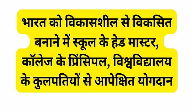 भारत को विकासशील से विकसित बनाने में स्कूल के हेड मास्टर, कॉलेज के प्रिंसिपल, विश्वविद्यालय के कुलपतियों से आपेक्षित योगदान